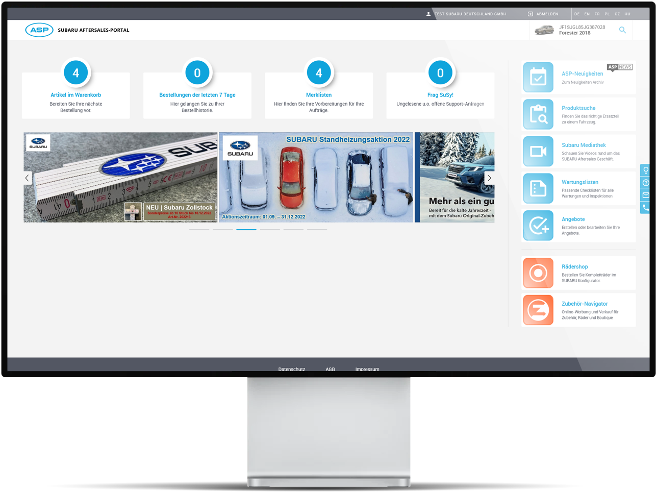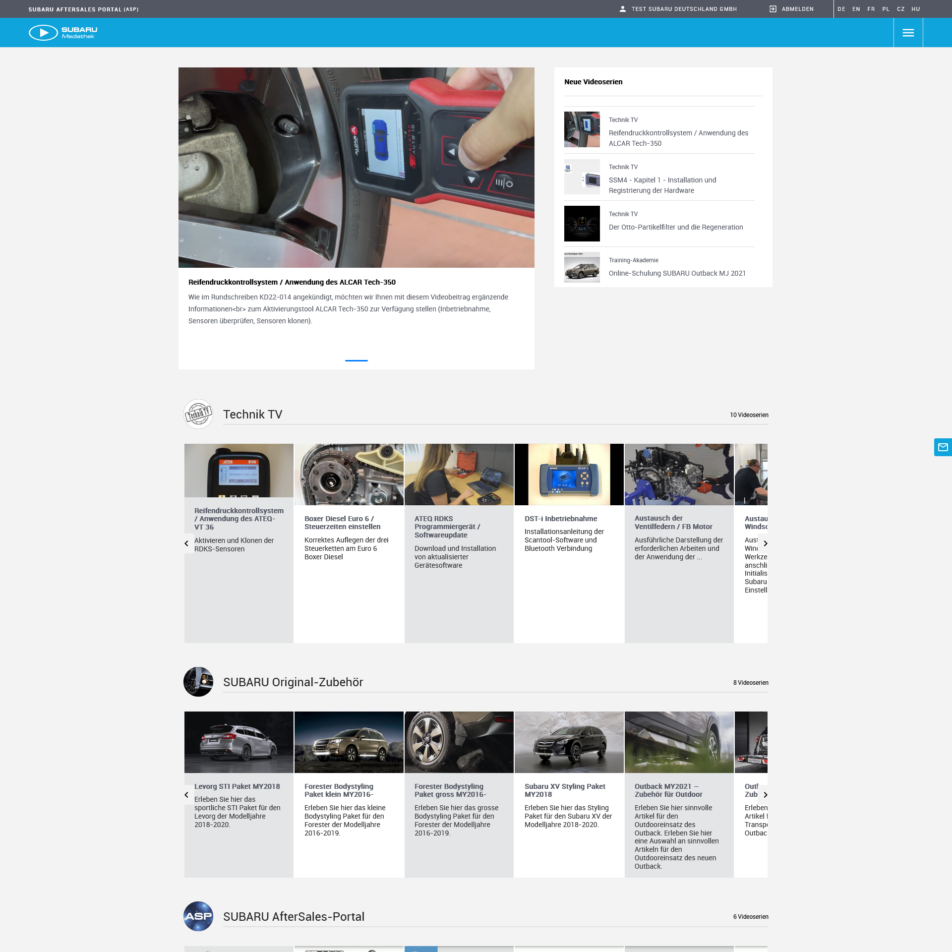 Das Subaru Aftersales Portal (kurz: ASP) ist das „Schweizer Taschenmesser“ für Subaru Deutschland und seine Händler und Servicepartner zur Digitalisierung der Aftersales Prozesse. Die ursprüngliche Idee und fortschrittliche Umsetzung einer Plattform für die Darstellung von Zubehörartikeln und -informationen, kombiniert mit einem kinderleichten Bestellprozess, inspirierte Subaru Deutschland zu einer Vielzahl weiterer komfortabler Funktionen, um den Subaru Partnern das Leben zu erleichtern, Loyalität zu schaffen und Systemlandschaften zu verkleinern.
