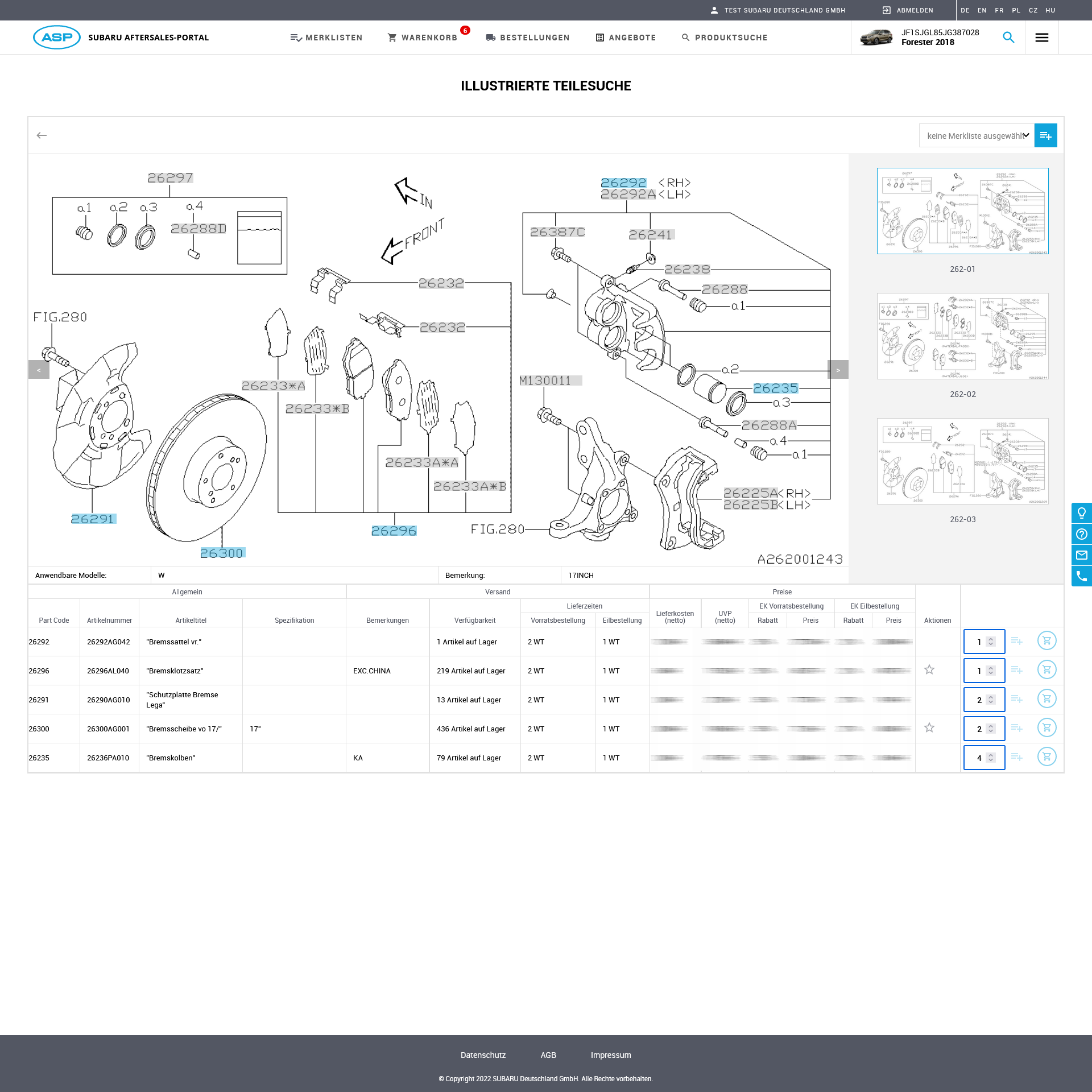 Subaru Händler bekommen im ASP einen Warenkorb, in den sie mit einem Klick jeden gewünschten Artikel hineinlegen können. Genau so schnell geht dann auch das Bestellen, sodass dem Autohaus mehr Zeit bleibt, sich um sein Kerngeschäft zu kümmern: dem Service am Endkunden.