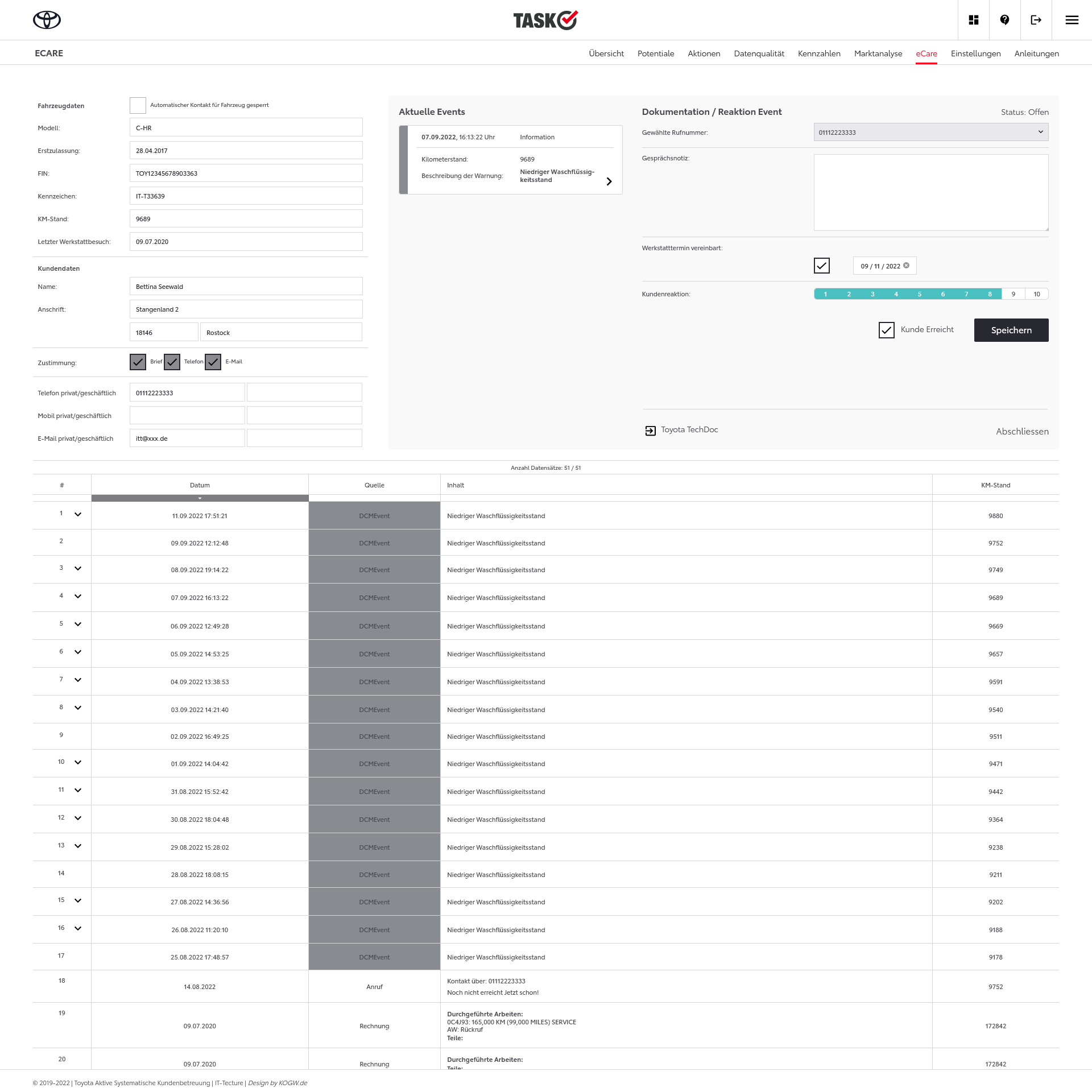 | Perspektive: | Durch Anbindung weiterer IT-Systeme aus dem Aftersalesbereich sollen für die Toyota Händler weitere Kontaktmöglichkeiten in TASK geschaffen werden. |