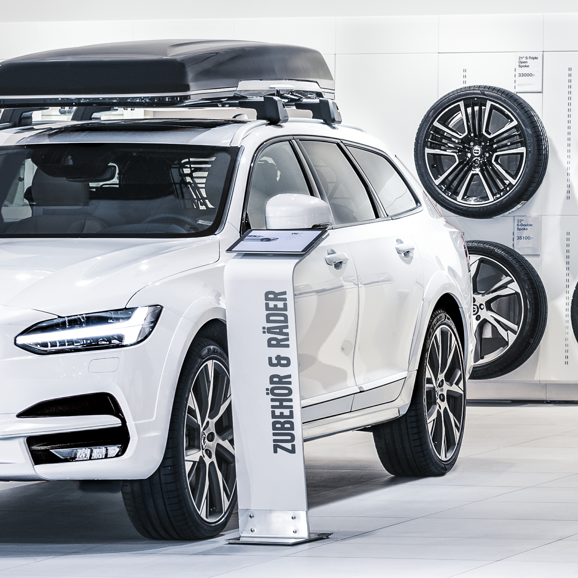 Mit Lösungen wie unsere QR-Code-Magnetfolien, QR-Code-Spiegelhänger oder dem Zubehör-Terminal präsentieren Autohäuser ihren Kunden modern, attraktiv und effizient Zubehörangebote digital im Showroom. -